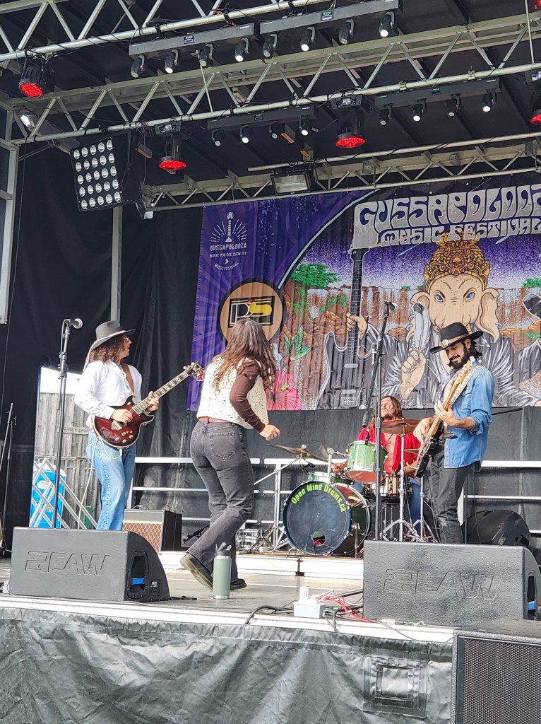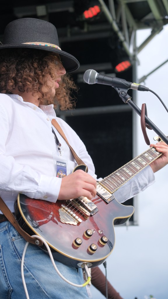 Every weather app predicted rain during their set at 4PM that day, but as it turns out, the sun wanted to come out to watch them play. The clouds spread out, and the rays illuminated the stage, as the first strings of “Hot Tramp” began to echo.