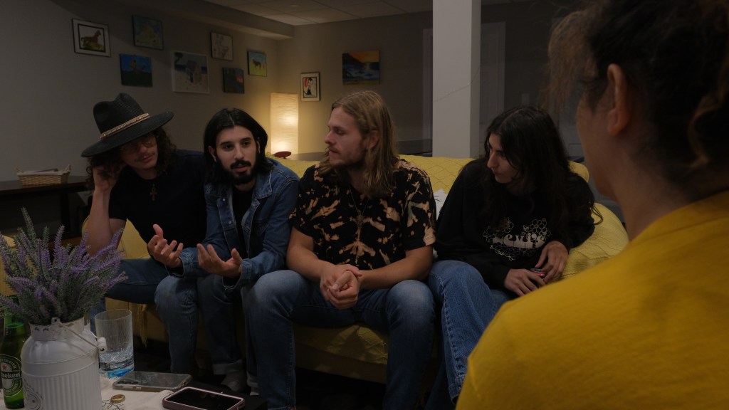 On the other, they’re just four friends in their late twenties, blowing off some steam, living up their youth, and cooking tacos, making sure the kitchen’s clean — before messing it up later in the night, in search of leftovers to make a late-night burrito to ease the munchies.